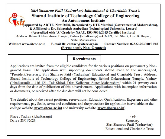 Shri Shamrao Patil Yadravkar Educational & Charitable Trust’s