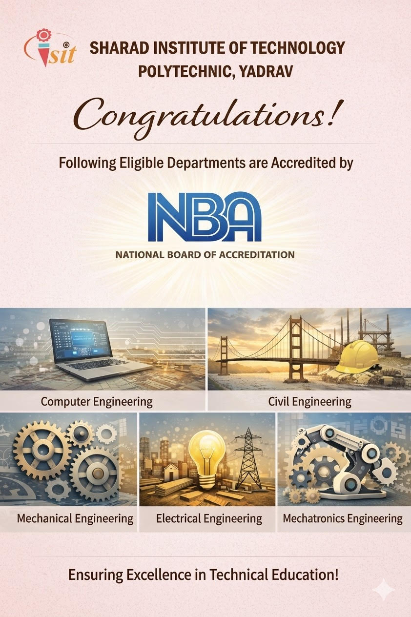 Shamrao Patil (Yadravkar) Educational and Charitable Trust has been contributing in the mission of transforming rural India into developed nation by running Sharad Institute of Technology’s Polytechnic at Yadrav, Ichalkaranji (SITP) with innovation, creativity, human intelligence and patience.“Service to Human being is Service to God”. It gives me immense pleasure to welcome you to the creative world of SIT Polytechnic which has very eco-friendly campus and is equipped with state-of-art infrastructure. We have well equipped labs, workshops and libraries to help students in attaining highest standards in academics, research and professional skills. The campus has adequate sports infrastructure to take care of Sports and recreational activities. Creating better human beings’ is our motto and we can do that when we are able to mould our students to be good human beings with values which are embedded for life.